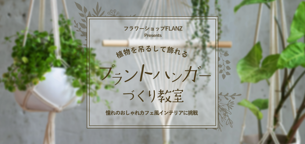お部屋が一気におしゃれ空間に!植物を吊るして飾るプラントハンガーづくりのオンライン講座です。
